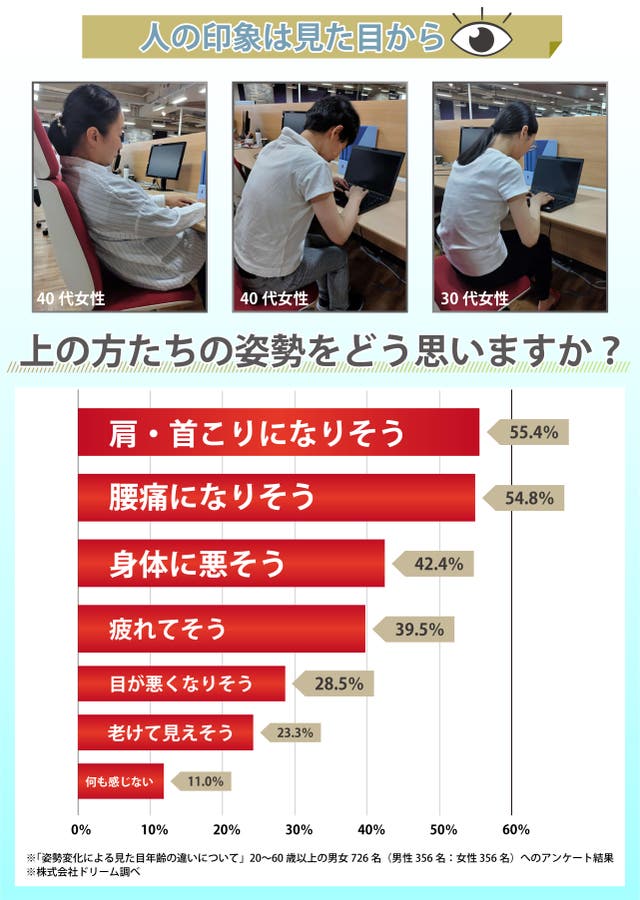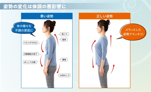 見た目の印象の悪さだけでなく、姿勢の悪さは体調にも悪影響を。