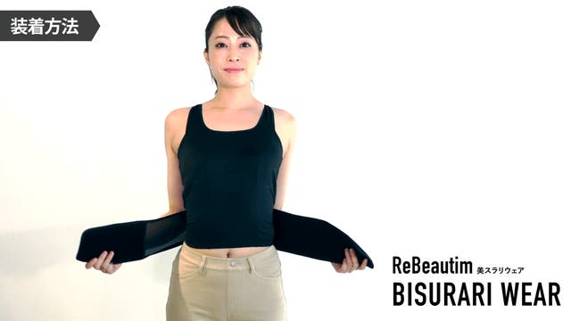 着用方法はとっても簡単です。息を吸い込むようにしながらお腹を凹ませ、幅広面テープを引き締めて巻いて完成です。