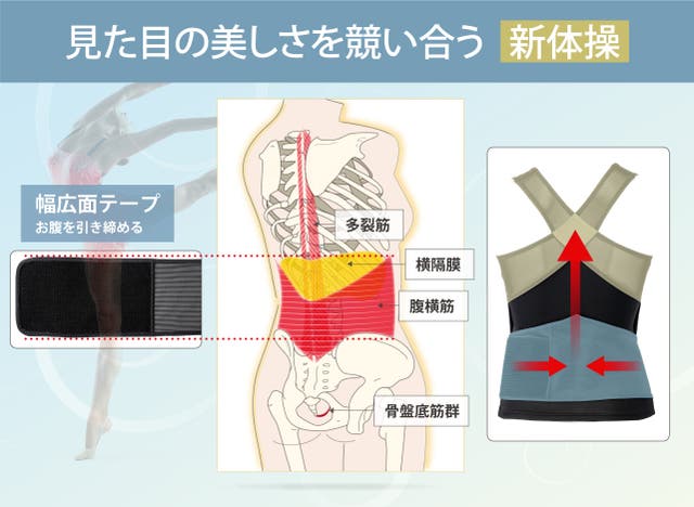 開発したのは、見た目の美しさを極める競技“新体操”で活躍された稲田選手。姿勢を美しく保つこと、身体の中のコアな体幹をしっかりつくることを目指して開発されました。