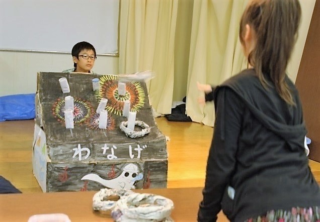 的あて、輪投げ、釣りなどのゲームの他、かき氷屋、綿菓子屋、チヂミ屋、ポップコーン屋などなど、子どもたちのアイデアが満載です。もちろん、ゲームの仕掛けを作るのも、お菓子を作るのも、売り子さんもみんな子どもたち。