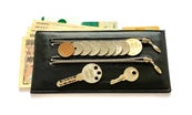 ❖ 収納例:お札5枚、カード3枚、コイン9枚、家のカギと金庫のカギ