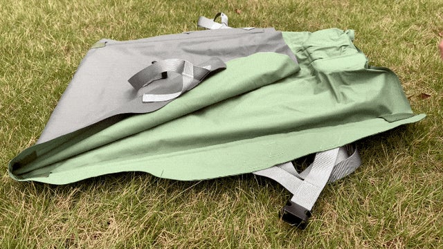 表面素材は40DTPUナイロンで、裏面は摩擦や破れに強いオクスフォードを採用しているため、地面の湿気による影響を受けません。