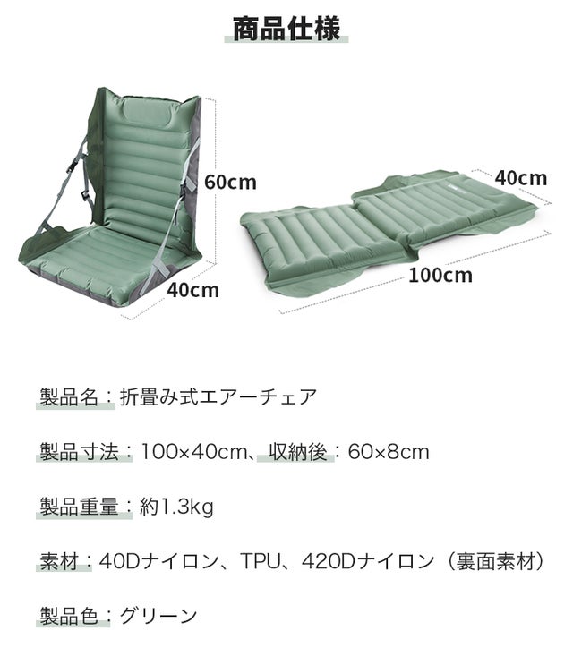 デコボコな地面やテント内では、折畳み椅子は使いにくいし、大きなエアーソファーは空間を占めてしまいます。そのため、より多くのシーンでも使用できる使い心地のいい商品を皆様に紹介したいと思います。