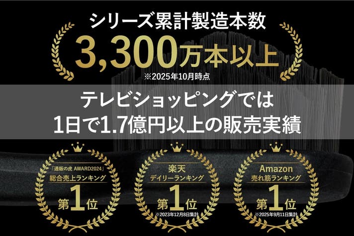 テレビショッピングでは1日で1億7千万円以上の販売実績を記録し、通販業界の指標となる「通販の虎AWARD2024」では、総合売上ランキング第1位を受賞。