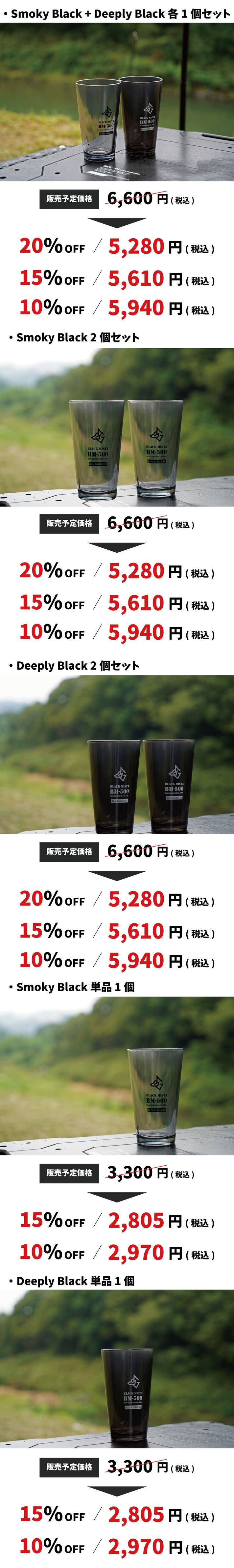 BLACK MISTAグラスは「Smoky Black」と「Deeply Black」それぞれ異なる表情の黒をご用意しました。