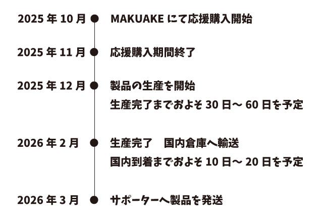 このプロジェクトはAll in型です。目標金額の達成に関わらず、プロジェクト終了日の2025年11月29日までに支払いを完了した時点で購入が成立します。