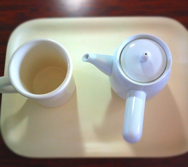 ご家庭にある急須とカップをご準備ください。写真は無印良品の急須とマグカップです。