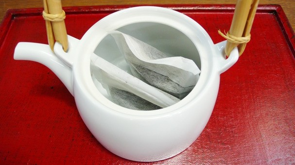 急須をお湯で暖めてた後に、ティーバッグを1個入れてください。