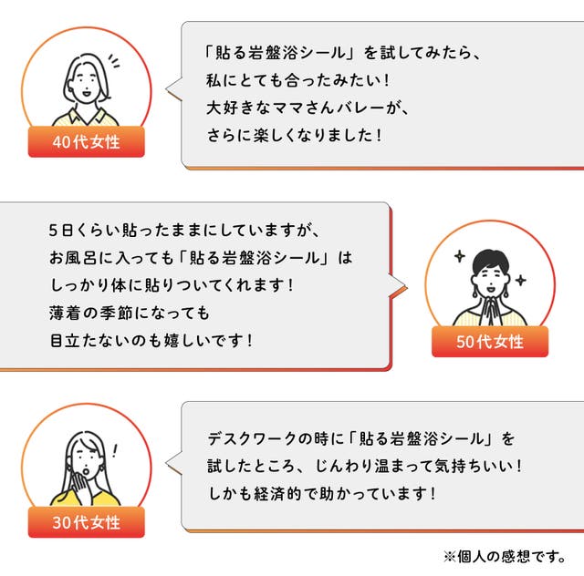 「貼る岩盤浴シール」の試作品をお試しいただいた方々の喜びの声をご紹介します。