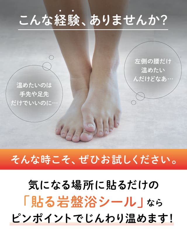 「貼る岩盤浴シール」は、その名の通り気になるところに「貼る」だけで、ピンポイントにじんわり温めてくれるパッチタイプ。