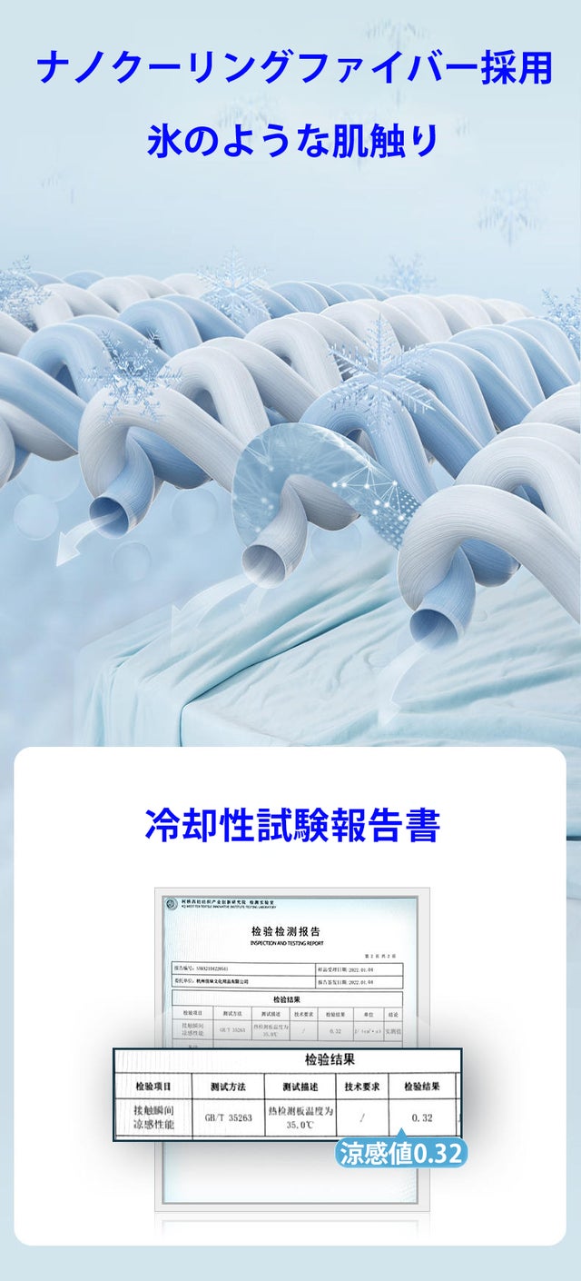 - 暑い夏の睡眠をサポートする冷感素材。Q-max値0.32