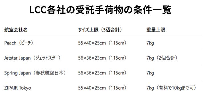 ※上記の情報は、2025年9月5日時点での内容です。航空会社によって基準が異なる場合があるため、実際の利用時には各航空会社の規定をご確認ください。