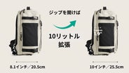 ・帰りにおみやげや衣類が増えても、ファスナーを開くだけで+10L。