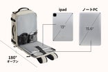 ノートPCもiPadも、専用ポケットにしっかり収まり、移動中もブレずに守られます。