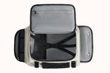 がばっと180度開くこのメインポケットなら、中央のクロスストラップが中身のズレや崩れを防ぎ、移動中も中身がきれいに保てます。