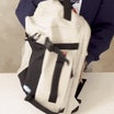 このバックパックなら、荷物が少ない日は厚さを圧縮して、スマートに持ち運びできます。