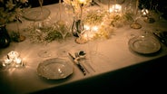 美しい花々と絵画たちが蜜蝋の灯に照らされる中、その中心にはテーブルが一つだけ。