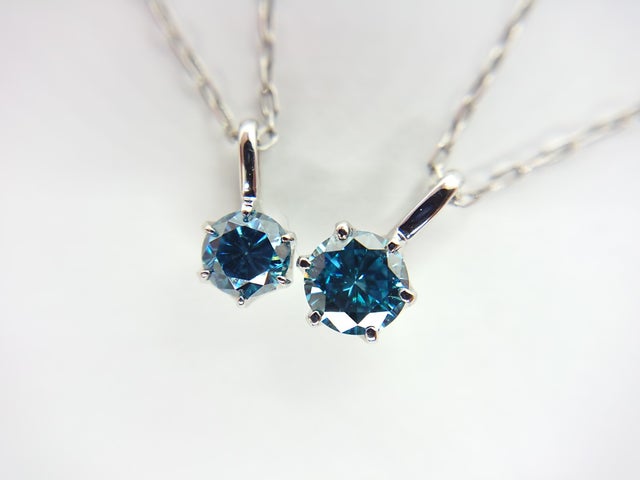市場に出ることがほとんどないブルーダイアモンド。それを、究極に近づけたシーブルー天然ダイアモンドです。希少価値の高い天然ダイアモンドをさらにコストをかけて、シーブルーカラー(海色のブルー)に加工(トリートメント)しました
