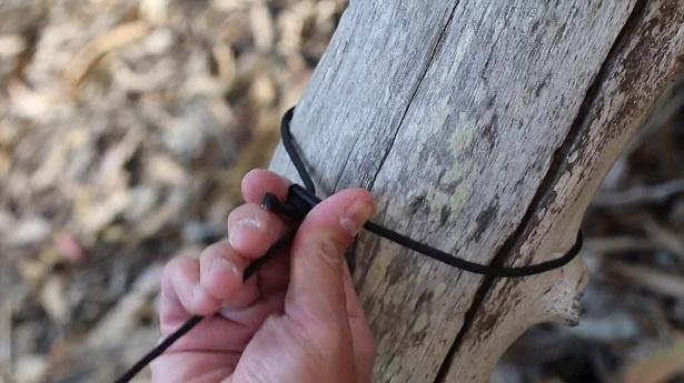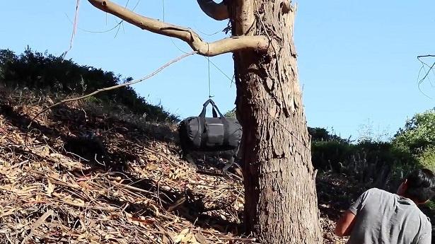 パラコードを張ってシートをかぶせ簡易テントとして使ったり、木にひっかけてバッグをぶら下げることで濡れた地面や動物、昆虫から守ることができます。