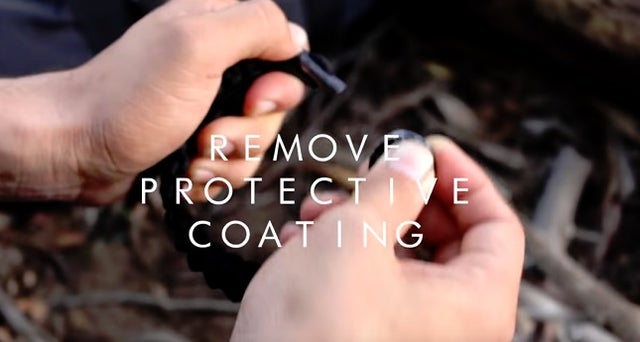 1.付属のリングで黒い棒状の表面のコーティングを一部削り取ります。