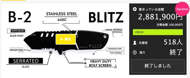 「Makuake(マクアケ)」は、実行者の想いを応援購入によって実現するアタラシイものやサービスのプラットフォームです。このページは、 プロダクトカテゴリの 「携帯性抜群!超コンパクト折りたたみ式ナイフ「BLITZ」ストレートエッジver.」プロジェクト詳細ページです。