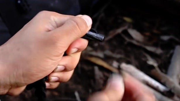 2.銀色になった個所に付属のリングを強く擦り付け火花を発生させます。