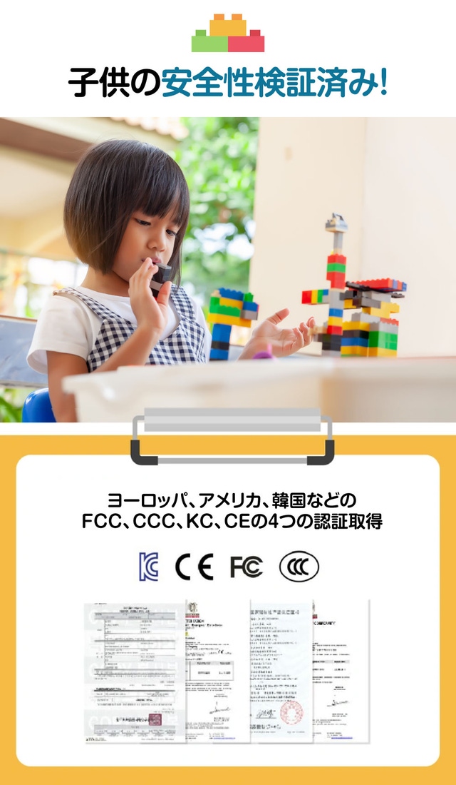 ブロックボットはヨーロッパ、アメリカ、韓国の主要子供関連認証を通過した製品で、安心してご使用いただけます。