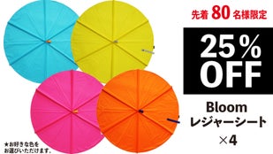 【先着80名さま限定 25%OFF】 一般販売予定価格:11,880円(税込) →8,910円(税込)+500円(送料)=9,410円(税込、送料込) ■お届け内容 BLOOM レジャーシート × 4 ※ピンク、イエロー、ブルー、の4色からお選びいただけます。 ※デザイン・仕様は変更になる可能性もございます。ご了承ください。 ※ご注文状況、使用部材の供給状況、製造工程上の都合等により出荷時期が遅れる場合があります。
