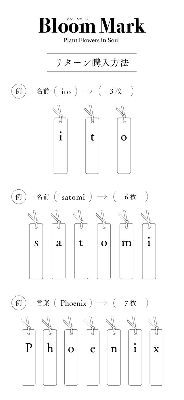 お名前やお好きなアルファベット7文字を選び、それぞれに対応する花とデザインしたオリジナル栞7枚セットをお届けします。