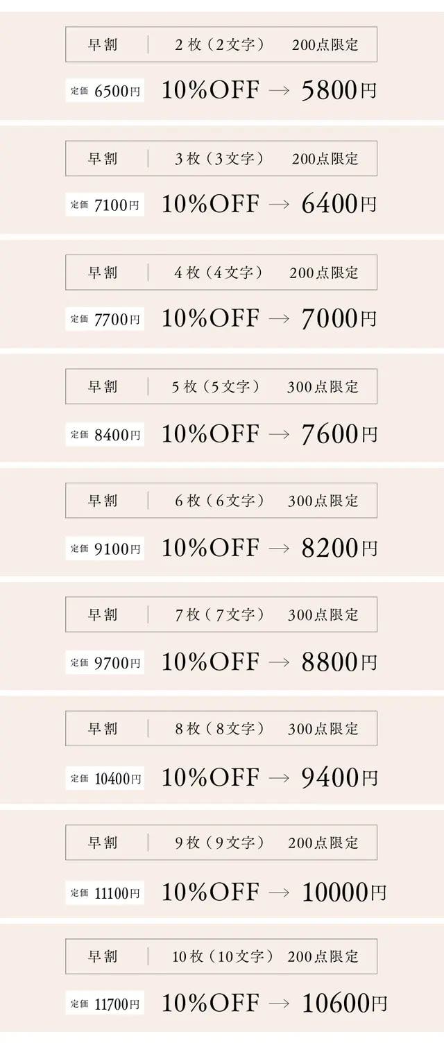 【超早割】10枚(10文字)15%OFF