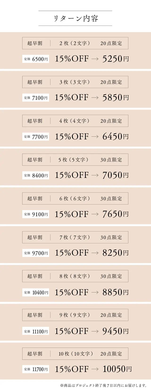 【超早割】7枚(7文字)15%OFF