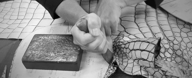 私たちは1974年創業の、主に爬虫類などの高級皮革を取り扱う博多の皮革製品メーカーです。ネクタイ屋から始まり、今では一点一点熟練した職人手づくりのハンドバッグや財布などの小物を制作しております。そんな職人の手から生み出されるMade in Japanのものづくりをもっと幅広い世代に広めたいという思いで「BLUE MONDAY」を立ち上げました。「目まぐるしく過ぎていく日々に、小さな幸せを。」をモットーに、持っているだけで嬉しくなるような、特別な日の贈り物になるようなものづくりを皆様にお届けしたいと思っております。