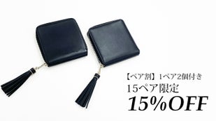 【ペア早割】15%OFF タッセル付き本革折財布 2点