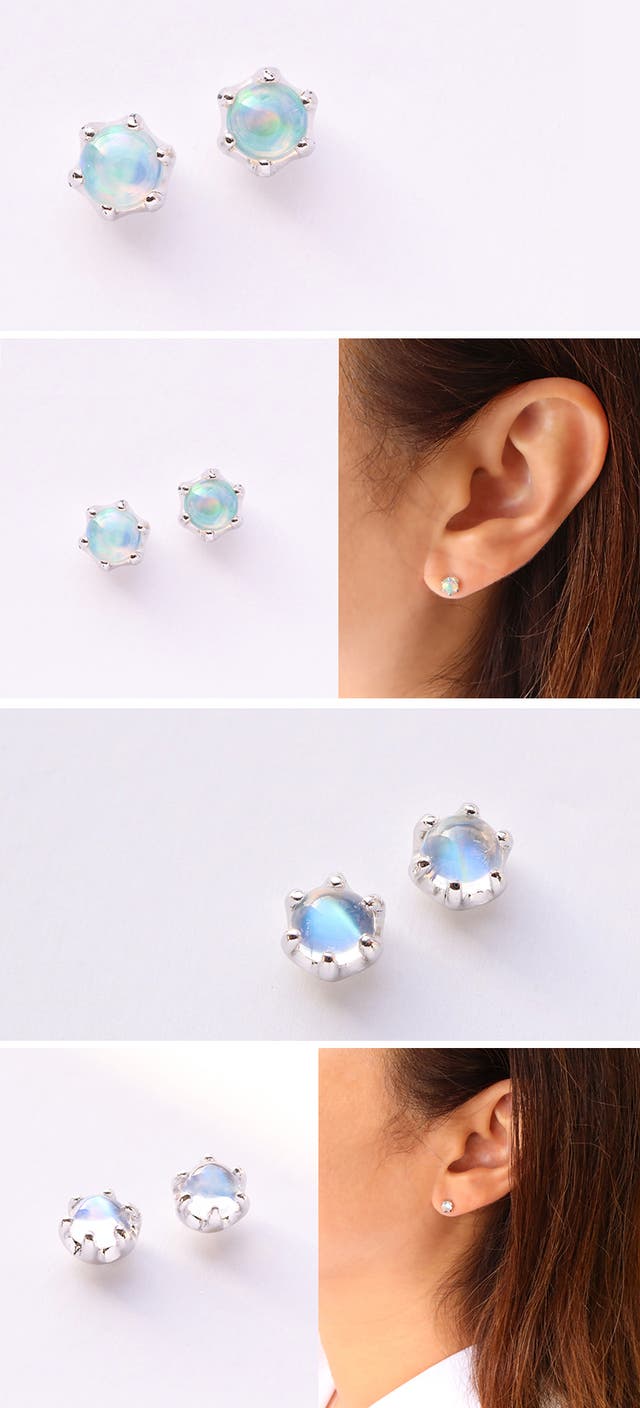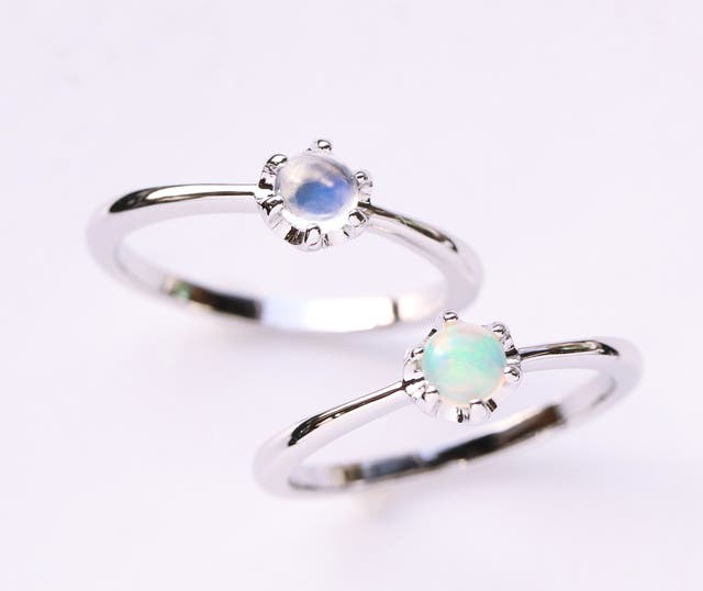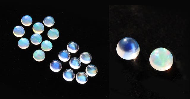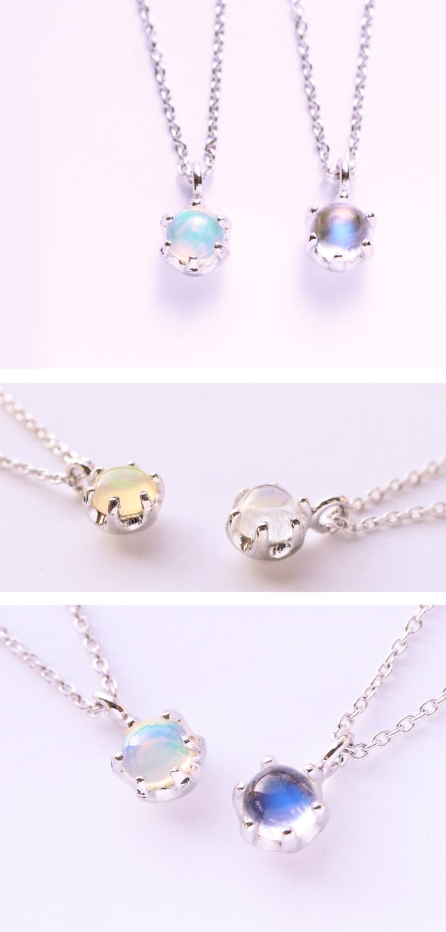 ブルームーンストーンとオパールの美しさが映える「カボッションカット」。