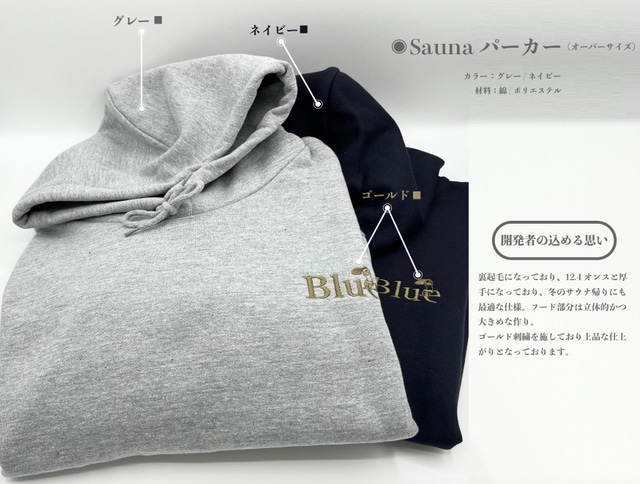 4.Saunaパーカー:ネイビー or グレー(サイズ展開:S/M/L/XL)