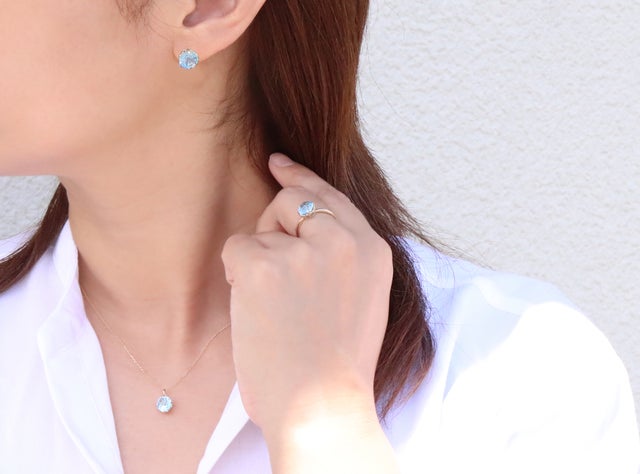 気品のあるアイスブルーのジュエリーを普段のファッションに取り入れれば、ワンランクアップすること間違いなしです。大人の女性らしい「アイスブルーコーデ」を楽しんでください