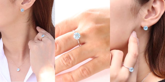 プロジェクトでは、アイスブルーカラーのブルートパーズジュエリーをご案内いたします。