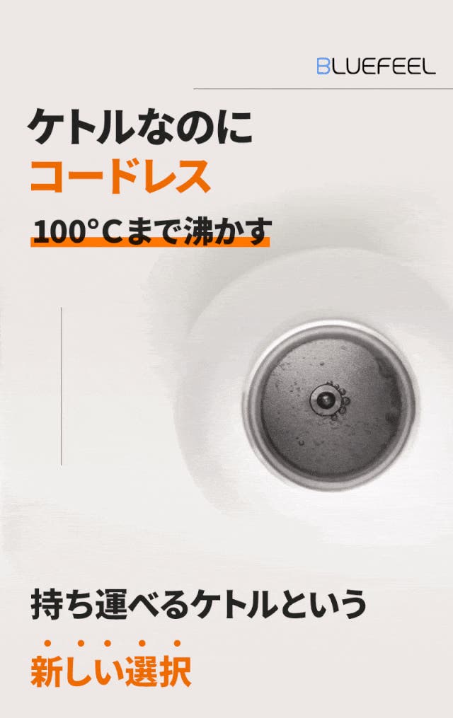 製品名|Bluefeel コードレスUSBケトル Heat100