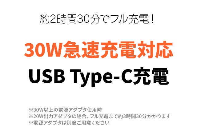 - 【USB充電式】18,000mAh大容量バッテリー内臓、30Wで急速充電。