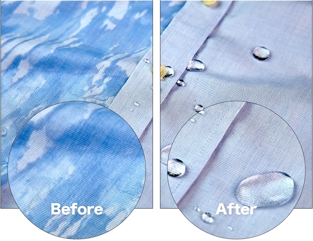 布地の通気性を維持しながら、先端ナノ粒子放水コーティング膜で布地を保護します。