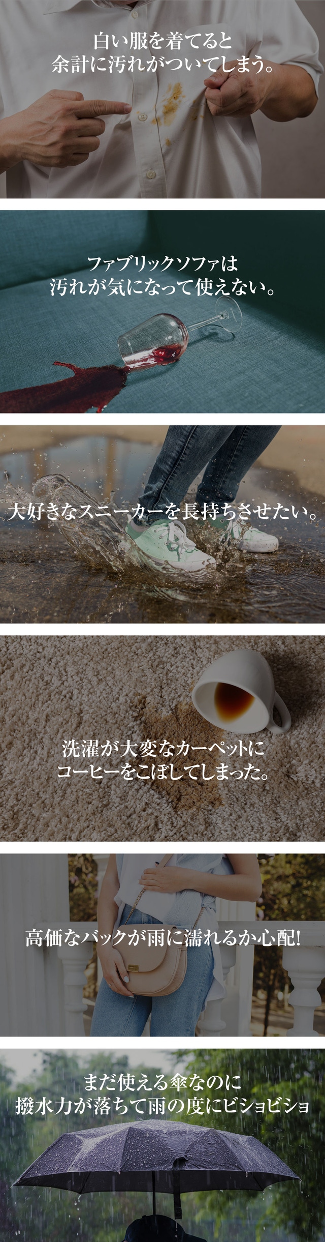 *傘など一時撥水コーティングされたものは、撥水力が落ちた時にご使用いただくことをお勧めします。