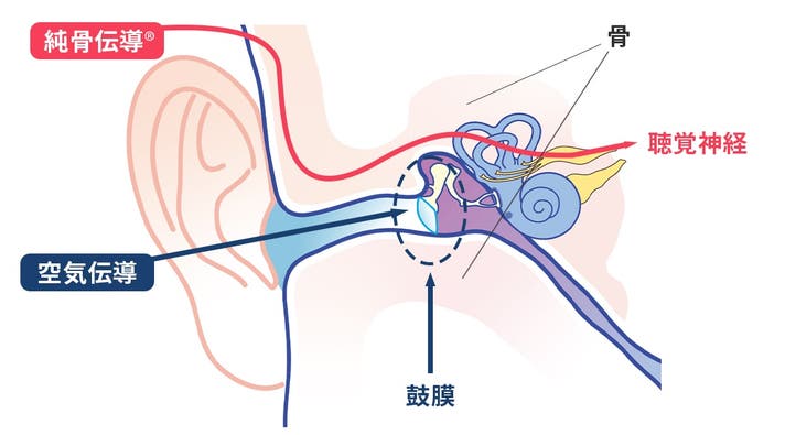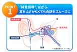 本製品は耳をふさがない構造で、軟骨を通じて音を届ける「純骨伝導®技術」を採用した集音器です。