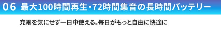 音楽再生は最大100時間、集音モードでも72時間。
