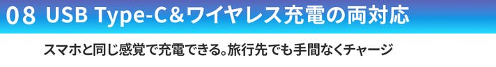 USB Type-Cとワイヤレスの両方の充電方式に対応。