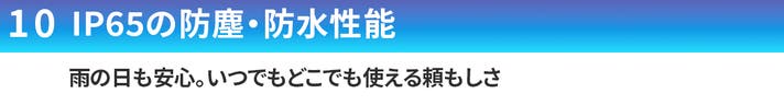 IP65相当の防塵・防水性能で、外出時の急な天候変化の時も安心。