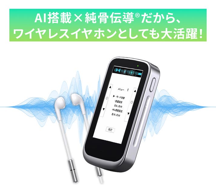 AIによるノイズ抑制を搭載した純骨伝導®️技術を採用しているため、集音器としてだけでなく、ワイヤレスイヤホンとしても快適にお使いいただけます。