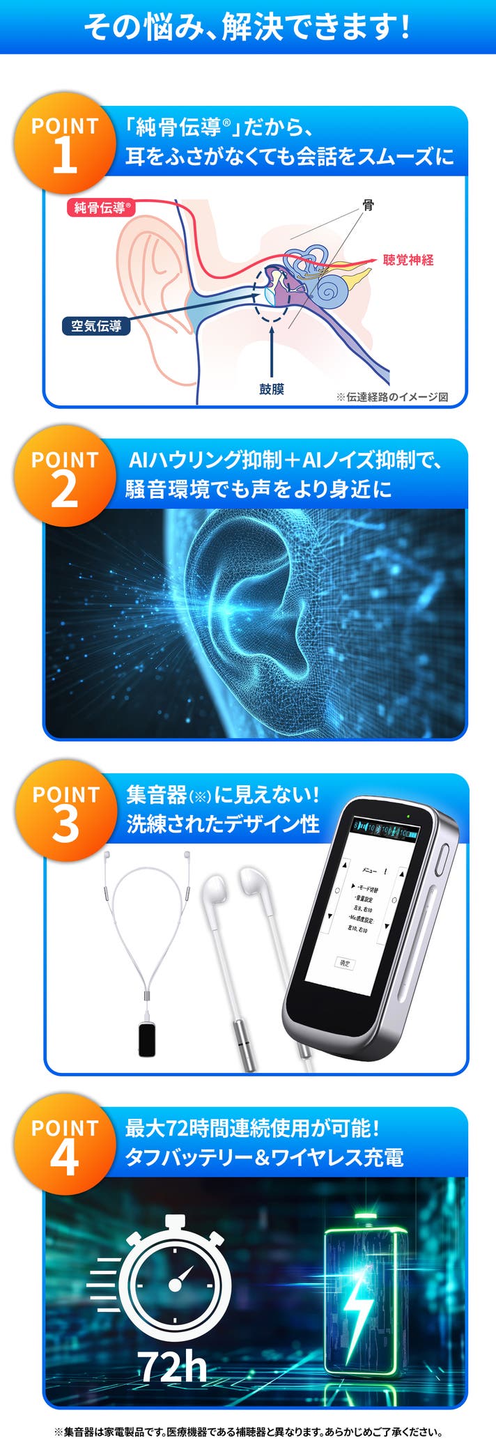 - 骨伝導じゃない、【純骨伝導®️で実現する】会話も音楽も楽しめる“次世代”ワイヤレス集音器!