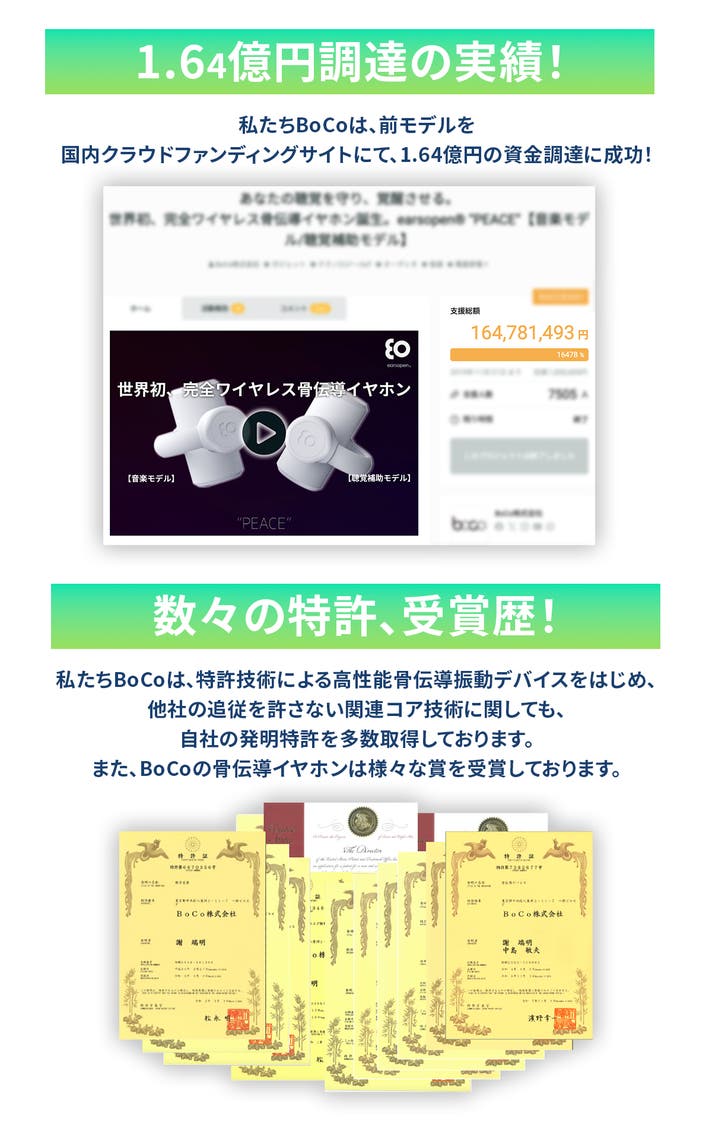 ・BoCoの特許技術採用「純骨伝導®️素子」搭載で、テレビの音量を上げなくても楽しめる