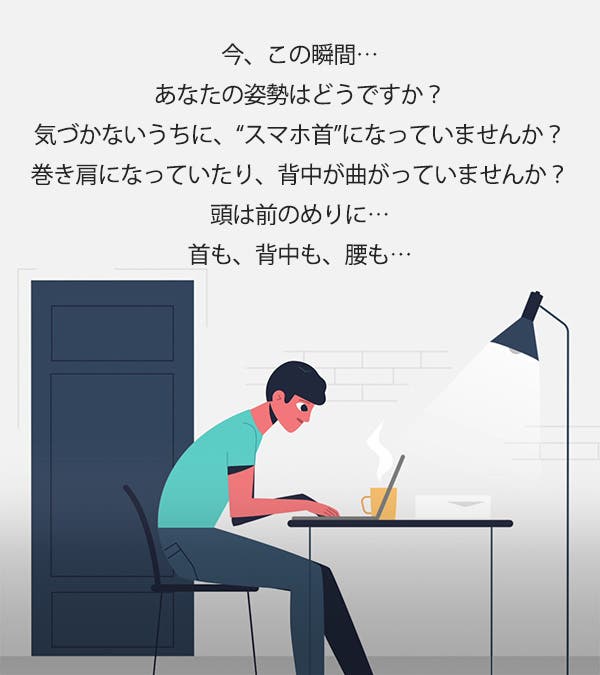 スマートフォンやパソコンが欠かせない現代。気づかないうちに姿勢が崩れてしまってはいませんか?とは言っても、正しい姿勢を常に意識し続けるのはとても難しいものです。そこで皆さまにお勧めするのは、