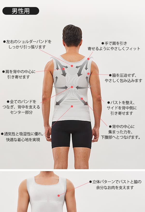 - 人間工学に基づいた設計&デザインで正しい姿勢をサポートする機能性インナーです。